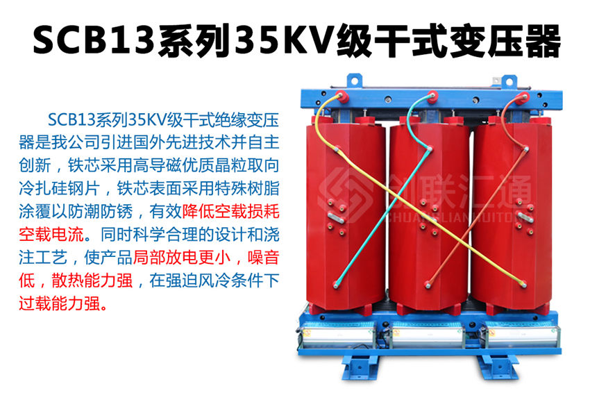 SC(B)13系列35KV環氧樹脂干式變壓器新一代節能產品,該系列配電變壓器產品使用在變壓器電壓直接從35KV電網轉變為400V配電的特殊場合,可減少10KV輸變電環節,使運行維護費用明顯降低。35KV級無勵磁調壓配電變壓器產品通過了家級鑒定,確立為高新技術產品。 產品具有損耗低、阻燃性好、承受短路能力強、體積小、噪音低、耐雷電沖擊性能好,溫度分布均勻等優點,而且由于環氧樹脂干式變壓器不使用變壓器油,不會產生油污染,無爆炸危險。產品可作為配電變壓器廣泛適用于電力系統城網改造,也可用于高層建筑、機場、車站、港口、地鐵待對消防、環保有嚴格、特殊要求的多種場合。