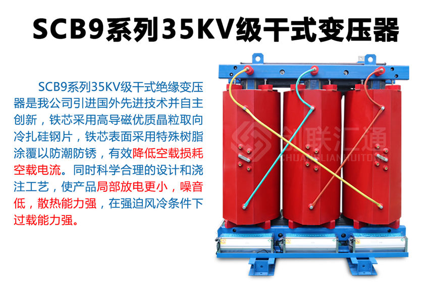 SC(B)9系列35KV環氧樹脂干式變壓器新一代節能產品,該系列配電變壓器產品使用在變壓器電壓直接從35KV電網轉變為400V配電的特殊場合,可減少10KV輸變電環節,使運行維護費用明顯降低。35KV級無勵磁調壓配電變壓器產品通過了家級鑒定,確立為高新技術產品。 產品具有損耗低、阻燃性好、承受短路能力強、體積小、噪音低、耐雷電沖擊性能好,溫度分布均勻等優點,而且由于環氧樹脂干式變壓器不使用變壓器油,不會產生油污染,無爆炸危險。產品可作為配電變壓器廣泛適用于電力系統城網改造,也可用于高層建筑、機場、車站、港口、地鐵待對消防、環保有嚴格、特殊要求的多種場合。