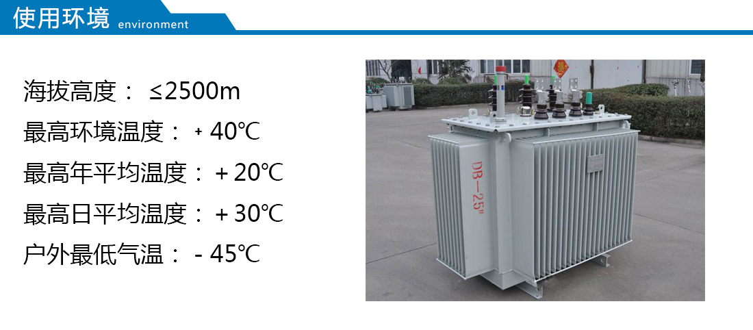 配電變壓器為工礦企業與民用建筑供配電系統中的重要設備之一,它將10(6)kV或35kV網絡電壓降至用戶使用的230/400V 母線電壓。此類產品適用于交流50(60)Hz,三相最大額定容量2500kVA(單相最大額定容量833kVA,一般不推薦使用單相變壓器),可在戶內(外)使用,容量在315kVA 及以下時可安裝在桿上,環境溫度不高于40℃,不低于-25℃,最高日平均溫度30℃,最高年平均溫度20℃,相對濕度不超過90%(環境溫度25℃),海拔高度不超過1000m。若與上述使用條件不符時,應按GB6450-86的有關規定,作適當的定額調整。