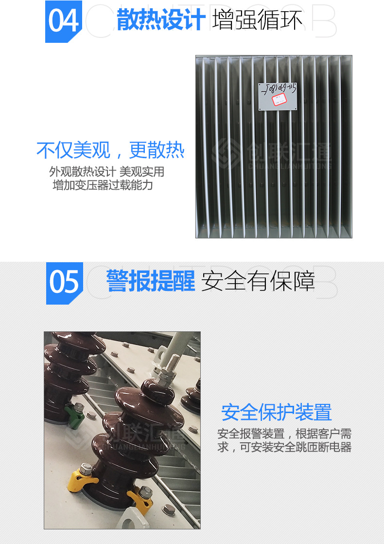 d、油箱采用波紋片,它具有呼吸功能來補償因溫度變化而引起油的體積變化,所以該產品沒有儲油柜,顯然降低了變壓器的高度。