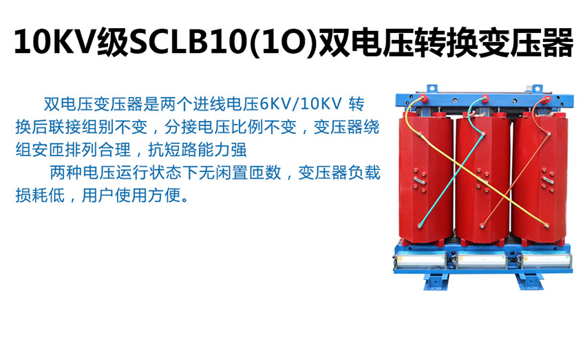 10kv級SCLB10(10)雙電壓轉換變壓器具有防火、阻燃、節能、低噪聲、無污染、體積小、可靠性高及免維修等特點外,采用了日本富士電機最新的工藝技術,從而進一步穩定了產品的技術性能指標,達到了家規定的10型干式變壓器的技術要求,是目前我最新一代干式變壓器。